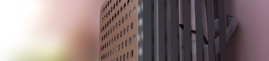 Hi-Fi ist die Wärmepumpenabdeckung für Klimaanlagen mit einem einzigartigen Stil, einem zeitlosen Design für alle, die nicht die üblichen rechteckigen Kästen wollen! Geeignet für jede Installation. Schützt die Außeneinheit vor Regen und Hagel, reduziert den Lärm, verschönert die Fassade.